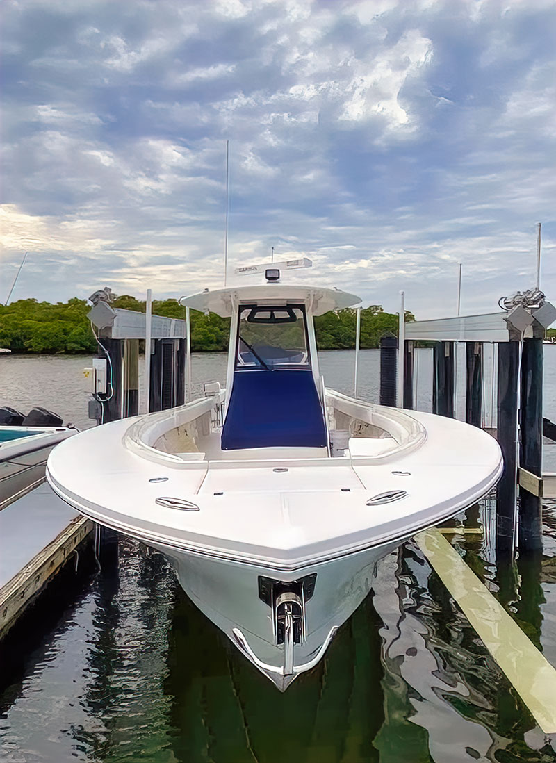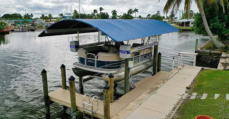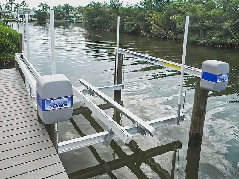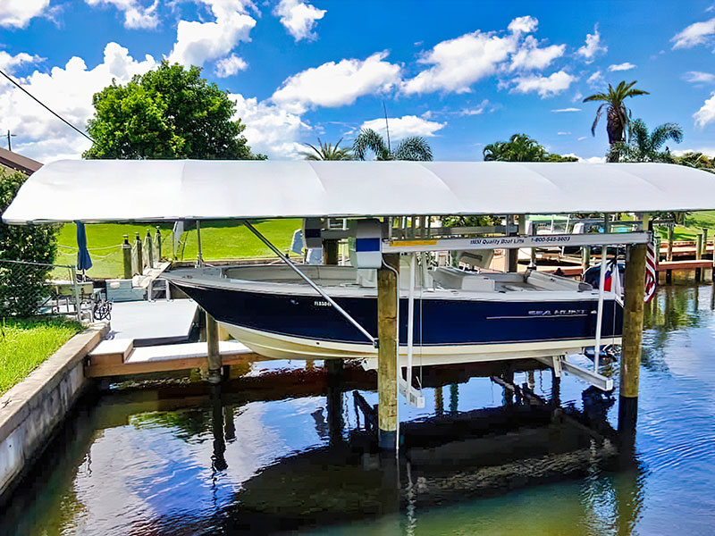 Below, you will find a photo gallery filled with vertical boat lift styles. Once you have selected your favorite, be sure to call IMM Quality Boat Lifts at (239) 667-6191. Or, contact us to set up an appointment to discuss a custom boat lift design.
